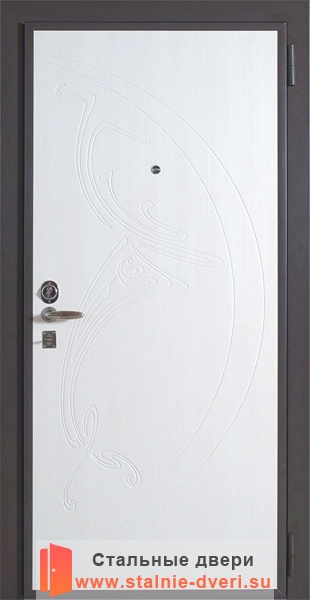 Железная дверь модификации MD-011 с покрытием фрезерованным МДФ ПВХ 10 мм белого цвета, надежно защитит от проникновения злоумышленников. Может быть изготовлена в нестандартном размере, по индивидуальному заказу.