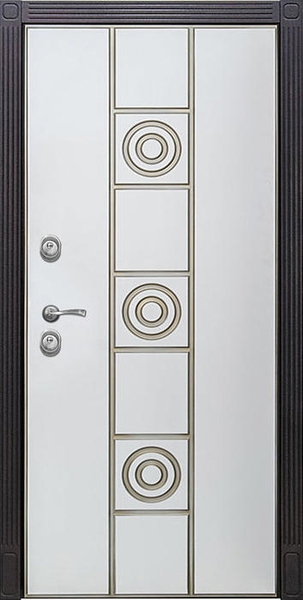 Конструкция входной двери состоит из полотна выполненного из металлического листа и короба (рамы), полотно дополнительно укреплено ребрами жесткости (2 шт.) и стальной полосой притвора. Производится из высококачественного металла (стальной лист 2,2 мм).